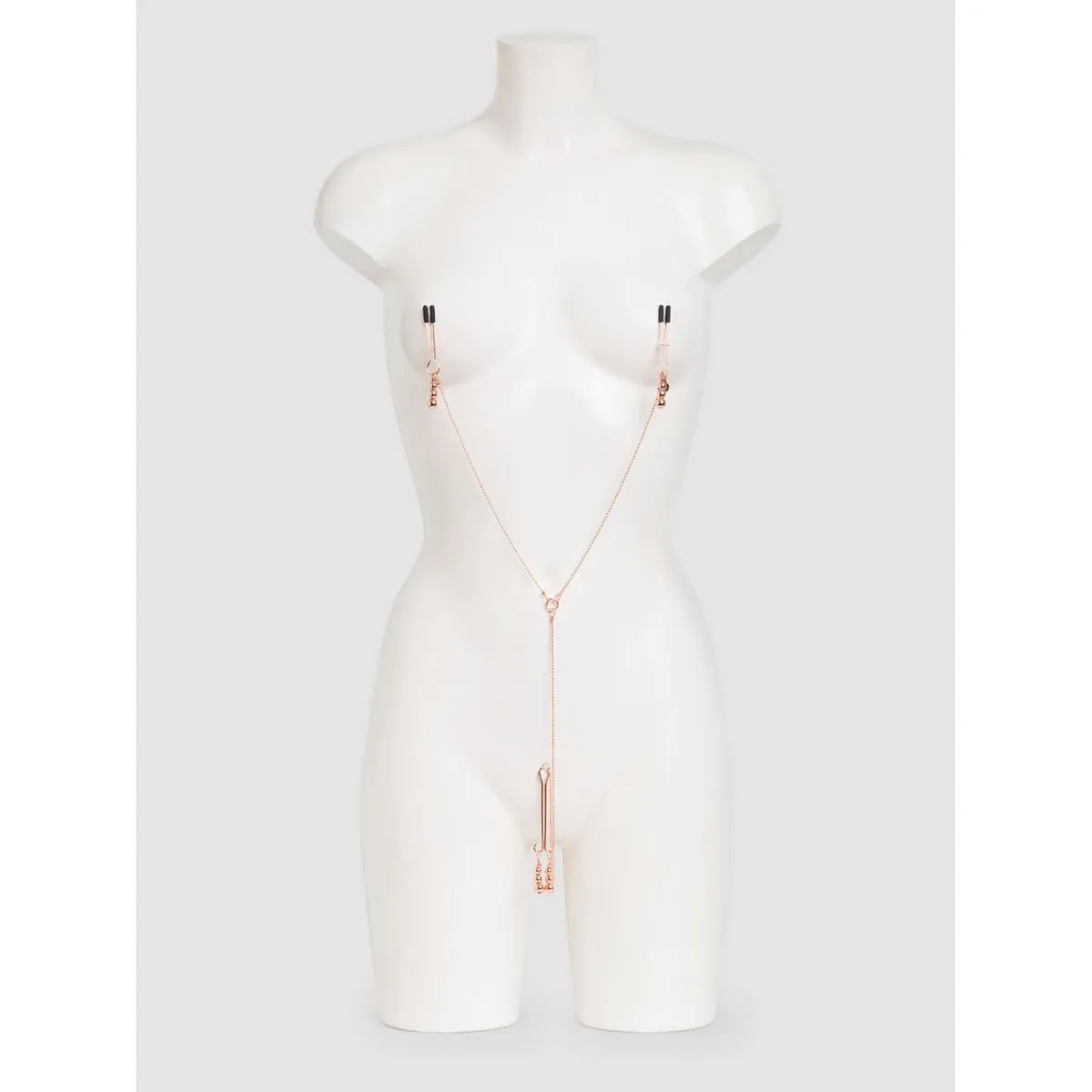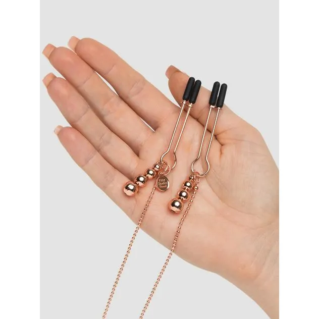 Élvezd a kellemesen súlyos mell- és csiklóláncot a Fifty Shades Freed kollekcióból, mely intenzív mellbimbó- és csiklójátékhoz ideális. A csúsztatható kialakítás egyszerűvé teszi a nyomás mértékének szabályozását, így az élmény teljesen a te kezedben van. A csipeszek szilikon borítása kényelmet biztosít, míg a gyöngyök kellemes húzó érzést nyújtanak.
