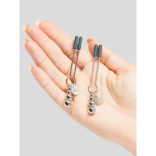 A szürke ötven árnyalata csipeszek azok számára készültek, akik szeretnék fokozni az érzékszervi élményeket és új izgalmakat bevezetni a BDSM játékokba. Az állítható, súlyozott csipeszek finoman csípik a bőrt, miközben a rászerelt fém súlyok extra nyomást gyakorolnak, ezzel fokozva az izgalmat és a stimulációt. A szilikon borítás kényelmes viseletet biztosít, így kezdők és haladók számára egyaránt ideális.