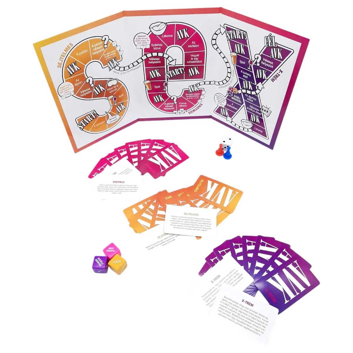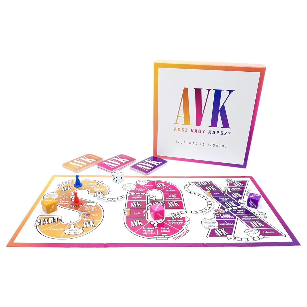 AVK: Adsz Vagy Kapsz - felnőtt szex társasjáték - csomag tartalma