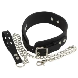Állítsa a nyakörv méretét a kívánt szorosságra a fém csat segítségével, majd rögzítse a pórázt a D-gyűrűhöz. Az első használat előtt és után tisztítsa meg a terméket. A nyakörv és póráz ideális kiegészítő szerepjátékokhoz vagy domináns-alárendelt játékokhoz.