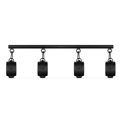 Szereld össze a terpesztőrúd három részét a kívánt hosszúságra (41 vagy 62 cm), majd rögzítsd a karabinereket a karikákhoz. Kösd rá a bilincseket vagy kötözőköteleket, és máris készen állsz az izgalmas és új pózok kipróbálására!