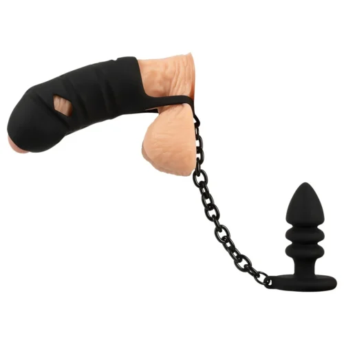 A péniszt a rugalmas és anatómiailag formázott szilikon ketrecbe helyezve, az elasztikus gyűrűket a heréken keresztül húzva mindent biztonságosan rögzíthetsz. Az anál plug bordázott felszínének köszönhetően további intenzív érzéseket nyújt, miközben a lánc finom húzást és stimulációt biztosít a gátnál.