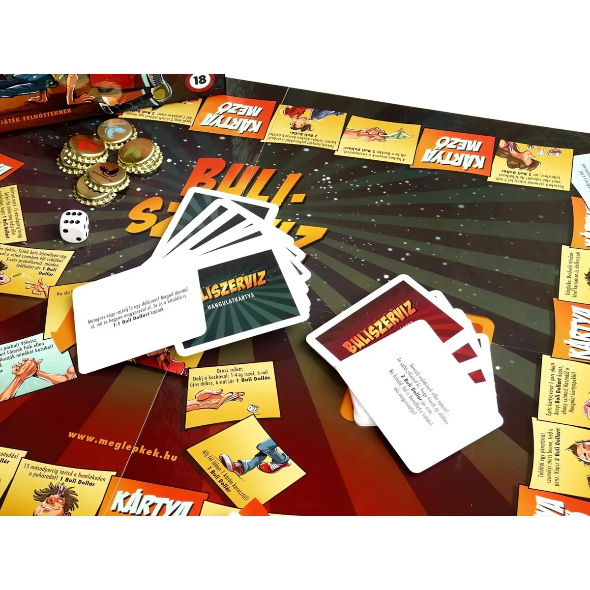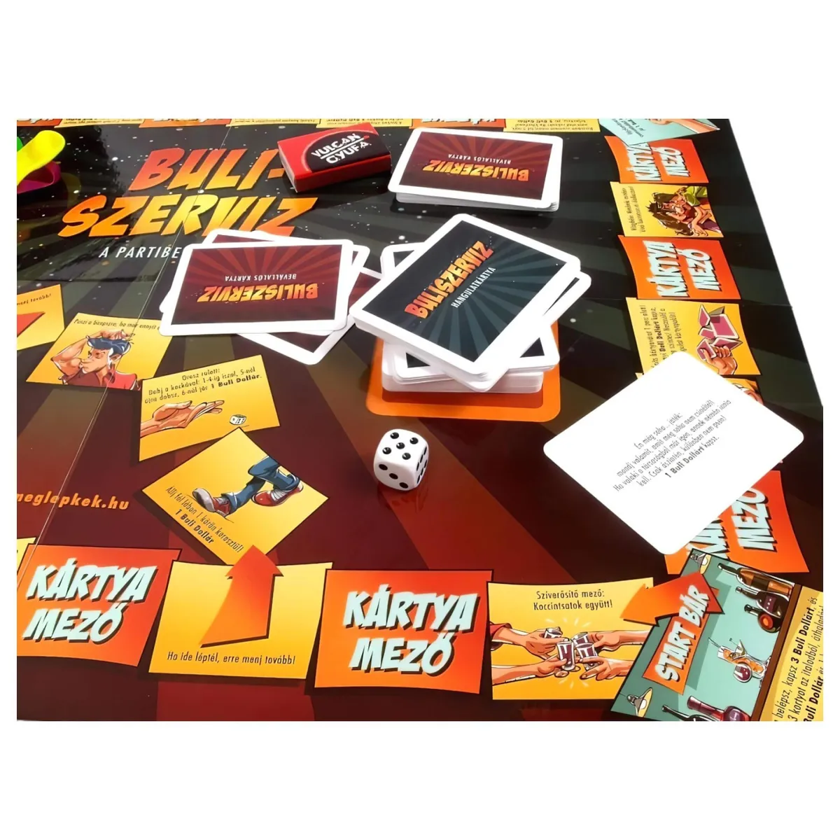 Buliszerviz, a tökéletes bulibeindító, hangulatfokozó társasjáték, mely nem hiányozhat egy házibuliról sem! Kifejezetten baráti társaságoknak készült, önfeledten szórakoztató játék, amely igazán felhőtlen hangulatot teremt. Egyszerűen a tábla mezőin előrehaladva a játékosoknak különböző vicces, pikáns és izgalmas feladatokat kell végrehajtaniuk, melyeket a húzott kártyák üzennek meg. Ezek a feladatok pedig már biztosítják a kellemes időtöltésen túl a szórakozást, mulatozást, egymáson és önmagunkon! A társasjáték 4–8 fő részére ideális, és garantáltan feldobja az estét.