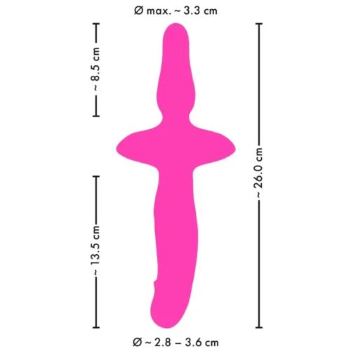Kétvégű, kettős funkciójú szexuális segédeszköz, amely egyszerre kínál vaginális és anális stimulációt. A hosszabb kar a hüvelybe helyezhető, míg a rövidebb anális plugként szolgál. A termék rugalmas, puha tapintású, könnyen behelyezhető és hajlékony kialakítású.