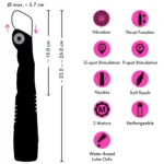 A fekete, hajlított kialakítású vibrátor célzottan a G- és P-pont stimulálására lett tervezve. A bársonyos tapintású szilikon felület kellemes érzést nyújt használat közben. Két motor gondoskodik az intenzív, mégis csendes működésről.