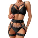 A Dark Allure szett a merész, modern nők számára készült, akik szeretnék kiemelni nőiességüket és eleganciájukat. A háromrészes szett rendkívül szexi kialakítású, puha és rugalmas anyagból készült, hogy egyszerre legyen kényelmes és lenyűgöző. A fehérnemű szett tökéletes választás különleges alkalmakra vagy romantikus estékre.