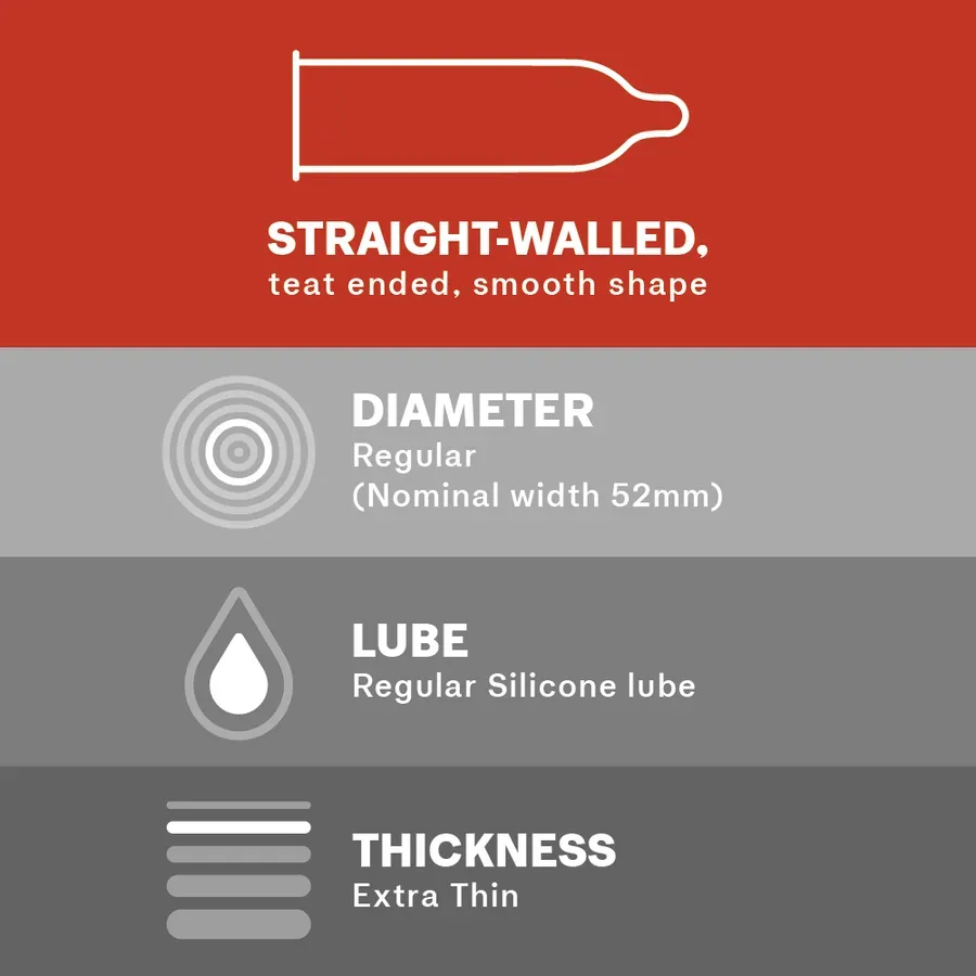 Arra lettek kifejlesztve, hogy még nagyobb érzékenységet biztosítsanak, ott, ahol arra a leginkább szükség van. Ezek az óvszerek átlagosan 20%-kal vékonyabbak, mint a hagyományos latex óvszerek, mégis kiváló védelmet és biztonságot nyújtanak. Az Ultra Thin kialakítás lehetővé teszi a simább, kényelmesebb érzést a szexuális együttlét során, miközben biztosítja a megfelelő védelmet.