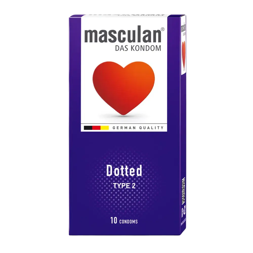 A Masculan Dotted óvszer pontozott felületi kialakítással készül. A síkosított bevonat hozzájárul a kényelmes használathoz, a kialakítás pedig támogatja az egyenletes illeszkedést. Alkalmi és rendszeres használatra is megfelelő lehet.