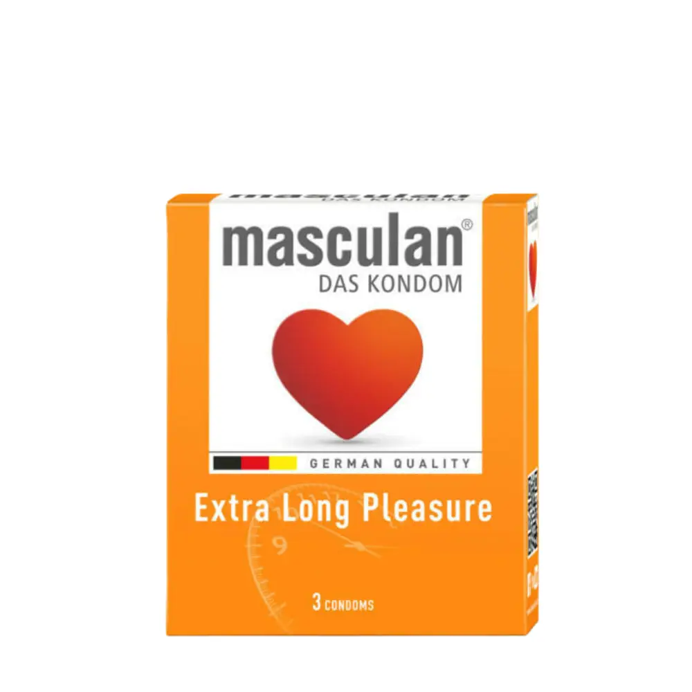 A csomag a Masculan márkájú Masculan Extra Long óvszert tartalmazza, a választott kiszereléstől függően 3 vagy 10 darabos változatban.