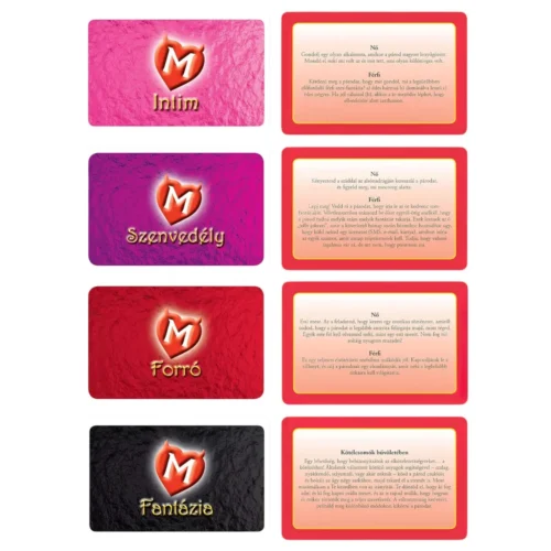 Egy kétszemélyes, felnőtteknek szóló társasjáték, amely romantikával, izgalmakkal és szenvedéllyel fűszerezi meg a kapcsolatotokat. A cél, hogy új szintre emelje az intimitást, miközben közelebb hoz benneteket egymáshoz. Három fokozatos szinten – Intim, Szenvedély és Forró – haladhattok végig, miközben 390 különböző feladaton keresztül fedezhetitek fel egymás testi-lelki vágyait. A játék során fokozatosan egyre mélyebb és pikánsabb élményekben lesz részetek, így minden este egy különleges kalanddá válik. Tökéletes választás pároknak, akik szeretnék felfedezni egymás új oldalát és megerősíteni az érzelmi kötődést.