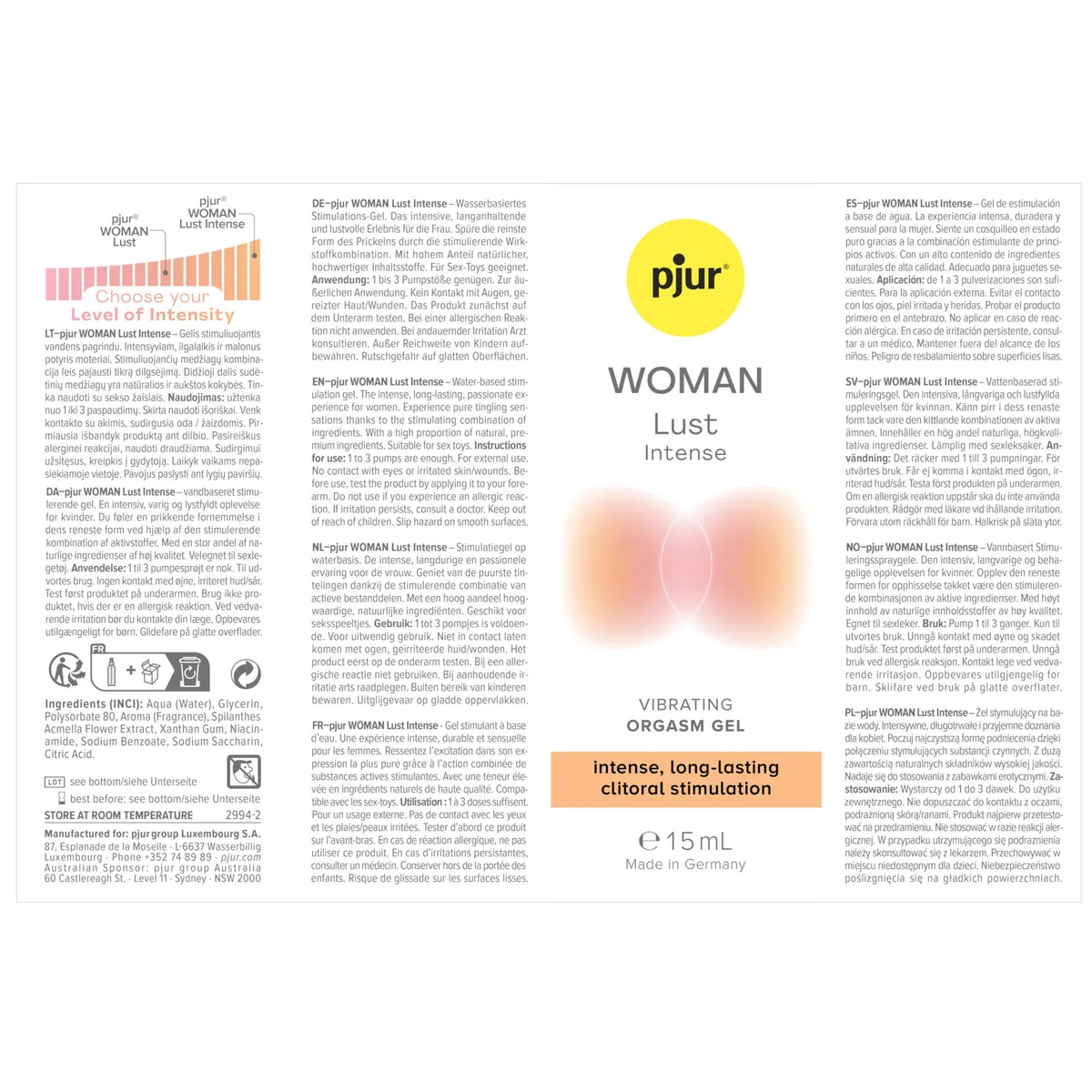 pjur Woman Lust - csiklóstimuláló gél - összetevői