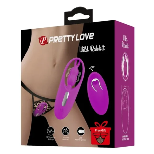 Csomag tartalma: Pretty Love Wild Rabbit - nyuszis csiklóizgató, USB-töltőkábel, távirányító, ajándék bugyi
