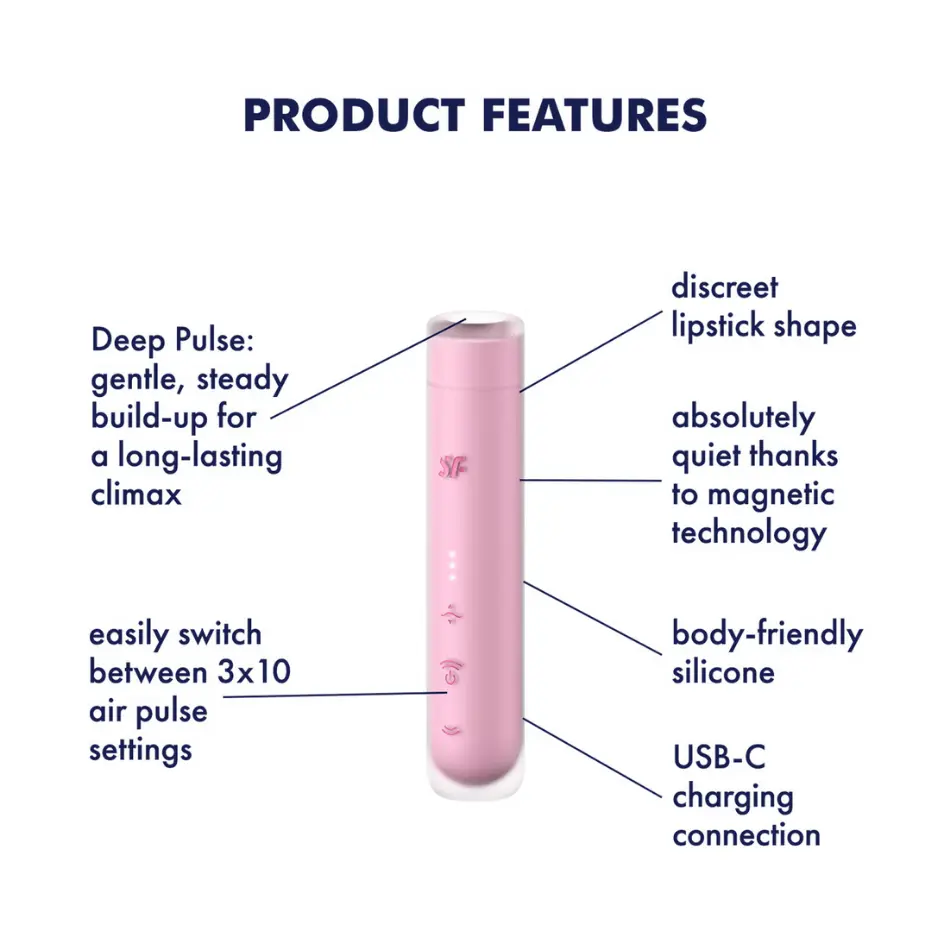 Speciális funkciók: Mágneses motorral működő Deep Pulse technológia, érintésmentes csiklóstimuláció, teljesen csendes üzemmód és fokozatos, mély stimuláció.