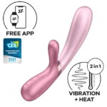 A Satisfyer Hot Lover egy prémium nyuszi vibrátor, amely ergonomikus kialakításának és melegítő funkciójának köszönhetően különleges élményt nyújt. Az ívelt tengely tökéletesen stimulálja a G-pontot, míg a csiklókar intenzív rezgésekkel kényezteti a csiklót. A két erős motor egymástól függetlenül vezérelhető, így teljesen személyre szabhatod az élményt. A vibrátor elegáns, ezüstös-rózsaszínes árnyalata és selymes felülete igazán exkluzív megjelenést kölcsönöz.