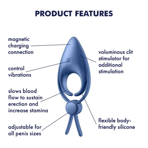 A Satisfyer Sniper prémium minőségű, orvosi szilikonból készült, amely bőrbarát, higiénikus, és rendkívül puha tapintású. A rugalmas anyag kényelmes viseletet biztosít, miközben az állítható méretű gyűrűk optimális illeszkedést tesznek lehetővé. A vízálló (IPX7) kialakítás lehetővé teszi a használatát a zuhany alatt, fürdőkádban vagy akár pezsgőfürdőben is. A beépített akkumulátor mágneses USB-töltőkábellel tölthető, így a Sniper mindig készen áll a következő kalandra.