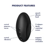 A készülék a nyomáshullámok és rezgések kombinációjával biztosít intenzív stimulációt. Testbarát szilikonból és szilárd vázon készült, ergonomikus, hajlított kialakítású eszköz, amely kézbe simul és könnyen kezelhető. Vízálló (IPX7) felületének köszönhetően zuhanyban vagy fürdőkádban is használható. Beépített akkumulátora hosszú üzemidőt biztosít, a kompakt méret pedig utazáshoz is ideálissá teszi. A modern, ovális kialakítás célzottan a csikló stimulálására lett tervezve, kényelmesen illeszkedik a kézbe. Kompakt méretének köszönhetően ideális választás utazáshoz is.