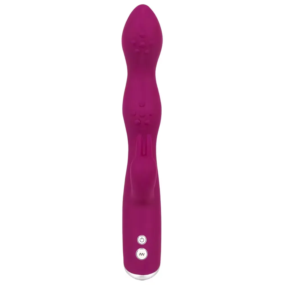 A Sweet Smile A & G-Spot Rabbit Vibrator egy rugalmas, intenzív vibrátor, amely három különböző ponton biztosít stimulációt: a csiklón, az A-ponton (AFE zóna) és a G-ponton. A csiklóizgató rész közvetlenül a csiklót stimulálja, miközben a hajlékony tengely a hüvelyben a G-pontot és az A-pontot éri el. Az AFE zóna és a G-pont egyidejű stimulációja növelheti a természetes nedvességtermelést, és akár többszörös orgazmushoz is vezethet. A 3 erős motor 7 különböző vibrációs módot biztosít, amelyeket könnyedén változtathatunk a személyre szabott élvezet érdekében. A vibrátor puha, bőrbarát szilikonból készült, amely kellemes tapintást nyújt a bőrön.