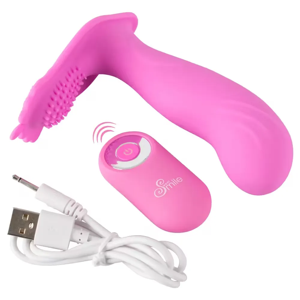 A Sweet Smile G-spot Panty Vibe egy innovatív, felcsatolható vibrátor, amely diszkréten elfér a fehérneműben, és egyszerre stimulálja a G-pontot, a hüvelyt és a csiklót. A pénisz alakú szár és az enyhén kidomborodó, pontozott felület lehetővé teszi a közvetlen érintkezést az érzékeny pontokkal. A vibrátor 10 különböző vibrációs móddal rendelkezik, amelyeket közvetlenül a készüléken található gombbal vagy a vezeték nélküli távirányítóval lehet szabályozni. Az újratölthető vibrátor USB-kábellel tölthető, míg a távirányító CR2032 elemmel működik, amely a csomag része.