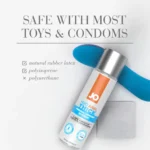 A System JO anál síkosító kompatibilis a legtöbb játékszerrel és óvszerrel, mivel vízbázisú. Ez azt jelenti, hogy biztonságosan használható latex és poliuretán óvszerekkel, valamint szilikonmentes erotikus eszközökkel. A termék vegán és gluténmentes, így a különböző érzékenységgel rendelkezők számára is ideális választás.