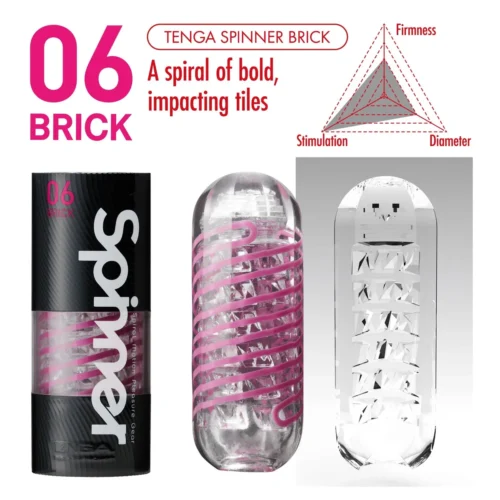 A TENGA Spinner Brick - maszturbátor egy forradalmi belső spirálos technológiával rendelkezik, amely használat során egyedi csavarodó mozgást idéz elő. Ez a dinamikus hatás minden egyes behatoláskor intenzív stimulációt nyújt, ami egyedülálló élményt biztosít. A belső kialakítás változatos és precízen megtervezett, hogy minden részletében különleges érzést nyújtson.