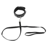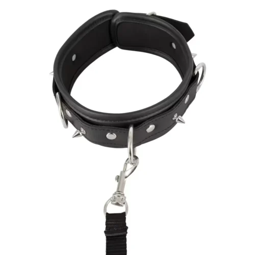 Ez a stílusos nyakörv és póráz szett kiváló választás a dominanciajátékok kedvelőinek. A bőrhatású nyakörv puha párnázással rendelkezik, amely kényelmes viseletet biztosít. A nyakörvet szegecsek és D-gyűrűk díszítik, míg a póráz levehető, így többféle módon is használható.