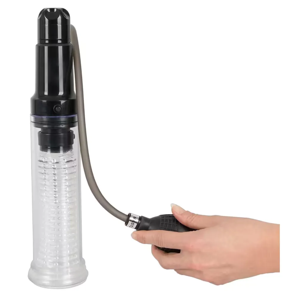 Formatervezés: Hengeres kialakítás levehető, pontozott hüvellyel és csatlakoztatható pumpalabdával. A készülék vibrációs funkcióval is rendelkezik, amely további intenzitást biztosít.